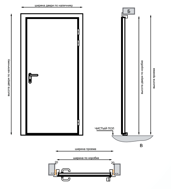 Дверь однопольная/ двупольная из стали 1,2 мм (1,4 мм), с порогом / без порога, коробка угловая с наличником по 50 мм с 3-х сторон / торцевая без наличника, наполнение базальтовая плита 50 мм, петли капли по 2 шт на полотно. Замок противопожарный, ручка на планке черная, цилиндр кл/ кл, уплотнение по периметру (Е для внутренних дверей) / (Е+Д для наружных дверей). RAL стандарт шагрень, открывание наружу, левая/ правая.